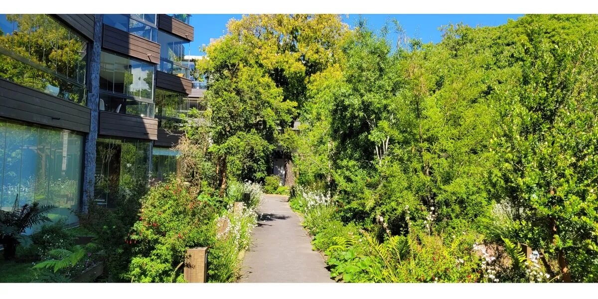 - Áreas verdes con vegetación nativa: murta, azalea, nalca, flor de la novia y castaños